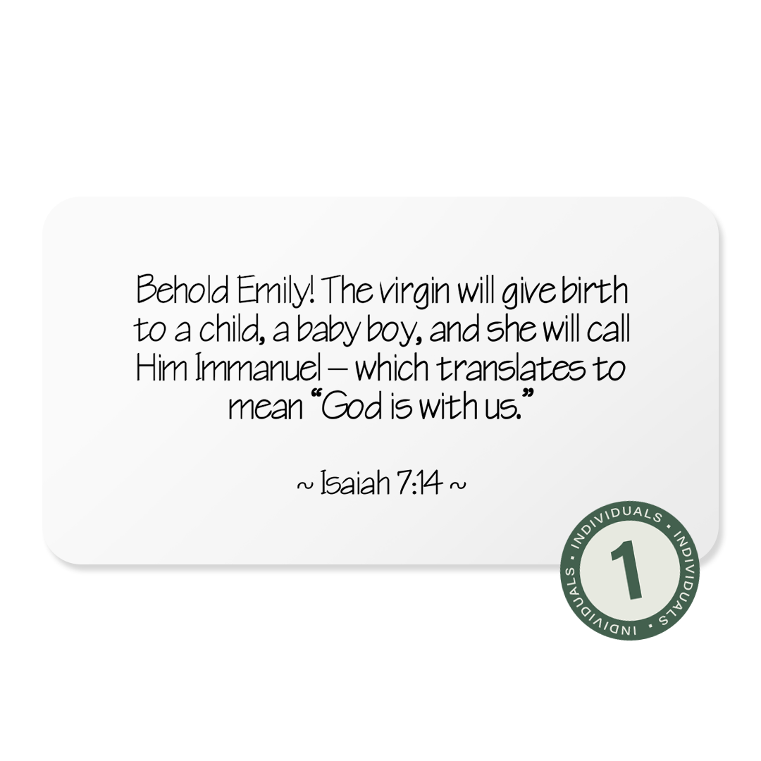 This Advent set brings together Scriptures to prepare our hearts to focus on the coming of Christ - both in our celebration of His birth each Christmas and in our anticipation of the coming of His return. Each set includes 30 personalized paraphrased verse cards from throughout Scripture and can be purchased with either a metal ($21.95) or wood ($24.95) cardholder, hole punched with a binder ring ($21.95), or simply as a set of cards ($18.95).